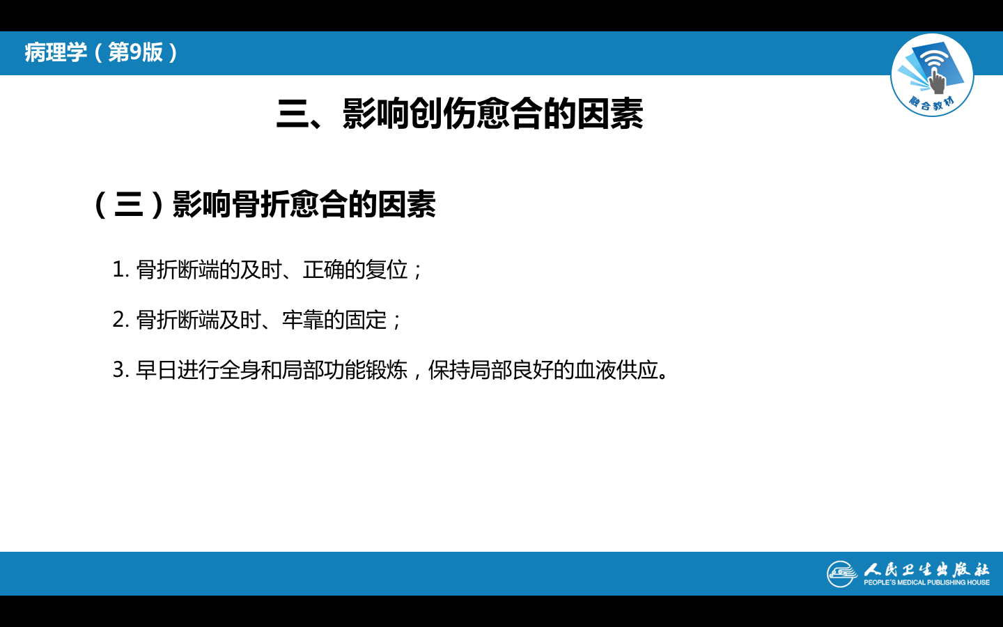 损伤的程度及组织的再生能力决定修复的方式、愈合的时间及瘢痕的大小。损伤组织的再生与修复是机体在生物进化过程中获得的,因此机体的全身和局部因素,均可影响组织的再生修复。影响再生修复的因素包括全身因素及局部因素两方面。