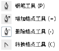 (1)钢笔工具下拉菜单不同图标的含义如下图