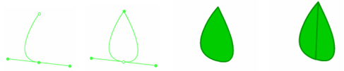 2、设置“钢笔工具”的属性,绘制一片树叶,过程如下图