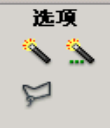 套索工具被选取时,其附属选项按钮会出现在选项条中(如图所示)。套索工具可以用不规则的形状任意圈选对象,它可以配合箭头工具。如果按住 Shift 键不放,就能够同时选择多个对象。