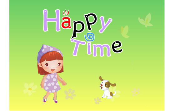 4、新建一个图层,导入位图“女孩和小狗”,借助“套索工具”将其中的小狗和女孩裁出,放在“happy time ”文字的下方,最后效果如下效果图。