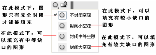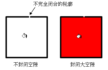 不封闭空隙:只在完全封闭的区域颜色才能被填充