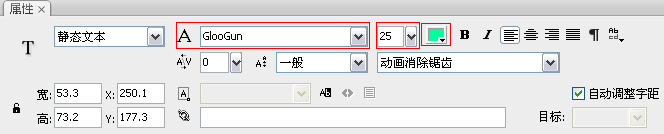 4、使用“文本工具”,“属性”面板设置如下图,为易拉罐添加文字,最终效果如本节的案例效果图。