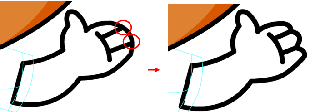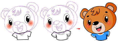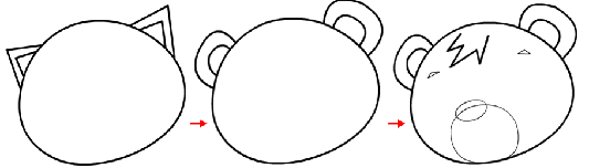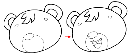 2、使用【选择】工具调整小熊的头发、眉毛、鼻子的形状,并绘制小熊的嘴巴细节。