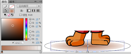 在舞台上绘制一个椭圆,再单击工具箱中的填充工具,选择合适的颜色,然后在要填充的椭圆上单击