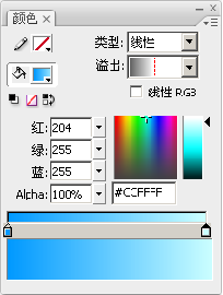 (4)在【颜色】面板中设置矩形的笔触颜色为“无”,填充颜色的类型为“线性”,从左至右第1个色块颜色为“#0099FF”,第2个色块颜色为“#CCFFFF”,如图所示。
