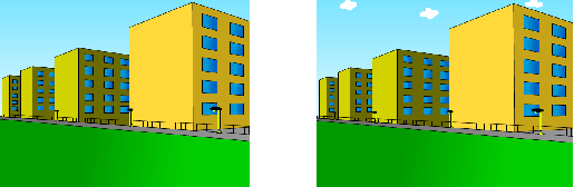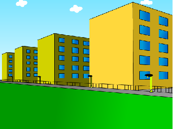 6.同理,制作草地和道路并填充楼房,最后绘制白云