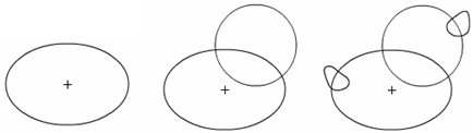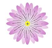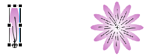 第二步:绘制“花朵1”图形元件,从库面板中拖出“花瓣”图形元件,调整变形中心后,进行变形和复制,过程如下图: