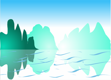 5、绘制“山峰”与其“倒影”,使用“铅笔工具”的“平滑”模式绘制山峰轮廓线,然后进行颜色填充,然后将山峰转换为图形元件,新建一个图层,在该图层放置“山峰”元件,并使其“垂直翻转”,调整其透明度,最后效果如下图: