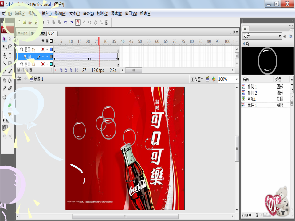 比如要制作苹果落地的动画,树上有好多的果子,你不会一个一个画吧? 这时,你就可以把一个苹果转化为图形元件。既然是图形元件,你可以多次使用而不需要再去一个一个绘制那么多的苹果。