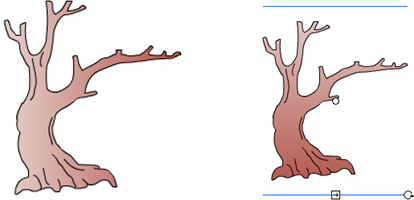 第二步:使用“颜料桶工具”填充树干,“渐变变形工具”调整填充效果,过程如下图: