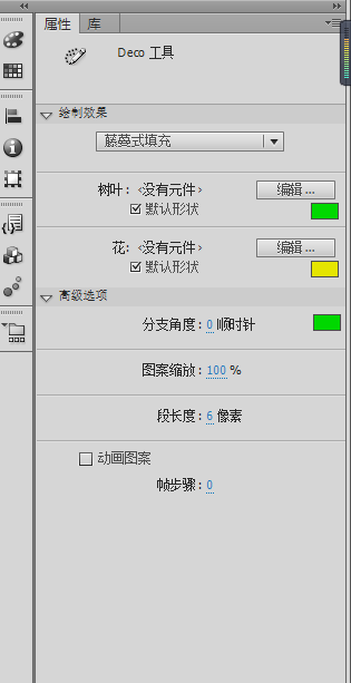 3、选取Deco工具后,工具栏右边即显示出了该工具的属性面板。