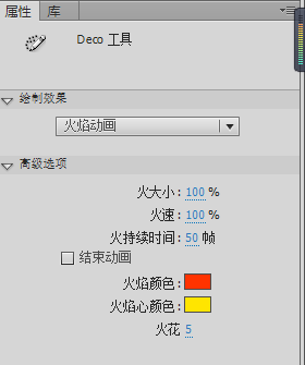 6、设置好各项参数后,把鼠标移到舞台上,点下,即制作好了“火焰效果”。