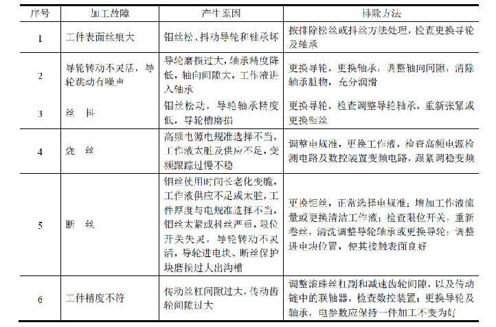 3.3.3 电火花线切割机床常见的故障与排除方法