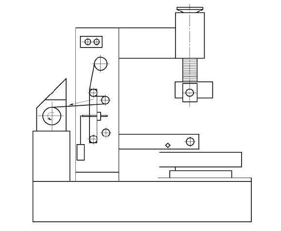(2)摇动储丝筒,检验拖板的往复运动是否灵活,调整左右撞块,控制拖板行程。