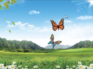 图4-6讲解了引导层动画,让两只蝴蝶沿着绘制的两条不同的曲线翩翩起舞。