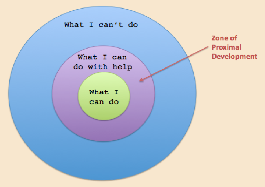 With the teacher’s scaffolding through questions or explanations or with a more capable peer’s support, the learner can move to a higher level of understanding and extend his/her skills and knowledge to the fullest potential.