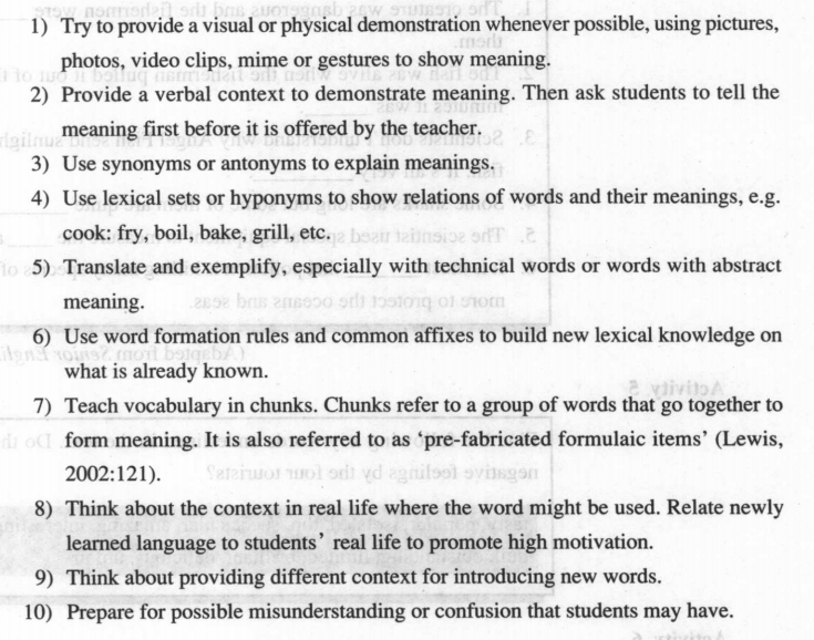 Remember: There are so many differents of presenting vocabulary, not just translation and English-English explanation.