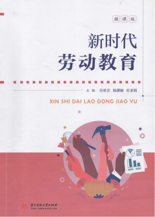 课程选用的《新时代劳动教育》教材,由华中科技大学出版社出版,课程团队-谷世宏、杨潇楠、杜亚娟主编。教材建设随着课程建设逐步推进,经历了讲义—校本教材—公开出版的艰辛历程!