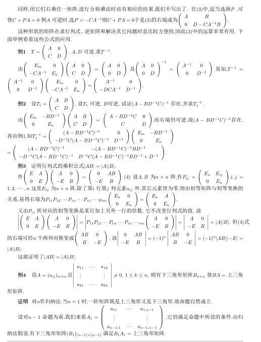 5.7 分块矩阵的初等变换及应用举例