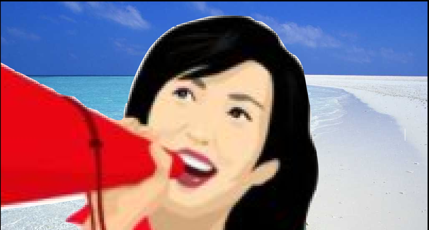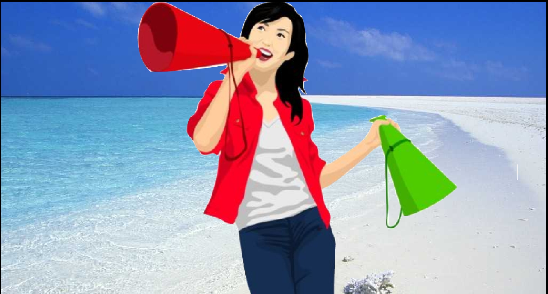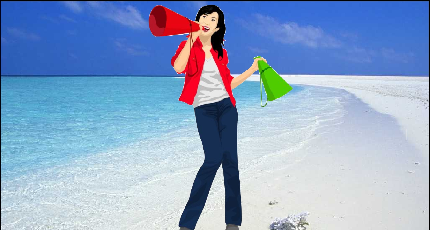在这个远景中,蓝天大海的背景全貌显露无疑,曾经的画面主题已经远去,这个时候的画面主题,已经被背景控制,主体人物已经成了陪衬,如果延续前面的主题的话,那就是,“在这样美丽的海边,还有一个人在喊话”,而大全景的时候,“他站在美丽的海边喊话,”在全景的时候主题是“用喇叭喊话的女孩,背后是一片海”景别再往前的话,大家应该知道主题位置的转换。