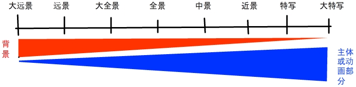 电影的画面由两部分组成,第1部分是背景,第2部分是画面的主体部分,从动画的角度讲,第2部分就是动画的部分。这两部分组成对景别的运用是非常重要的,