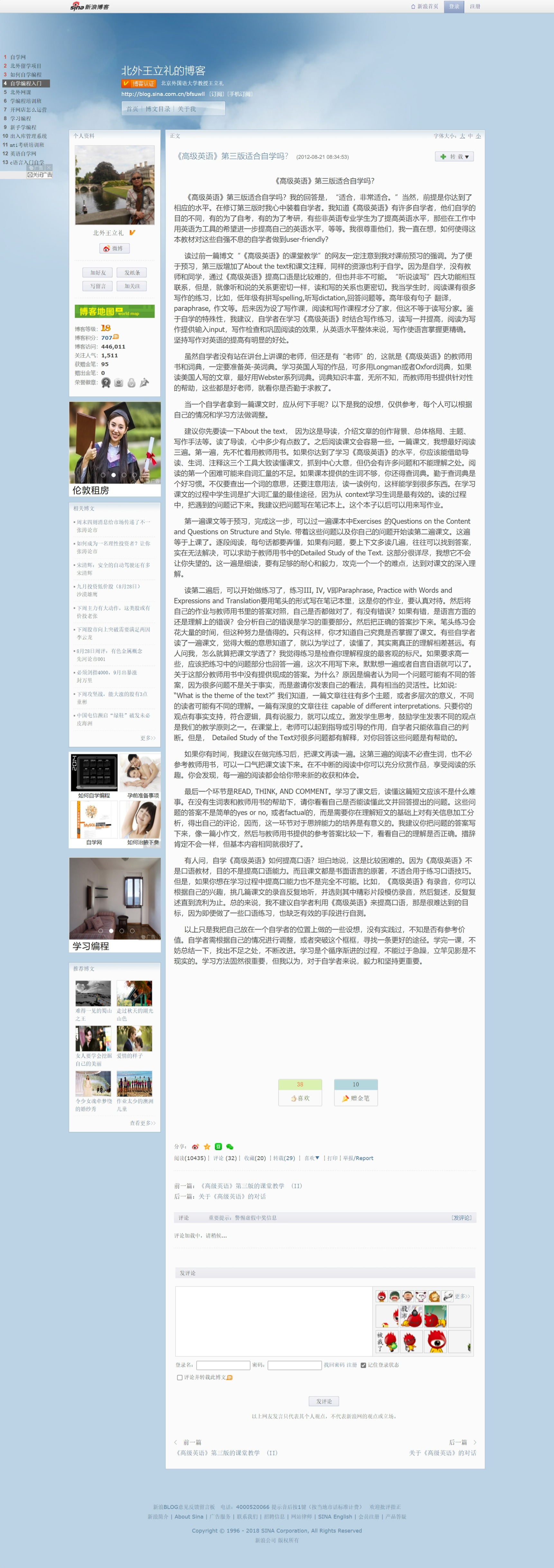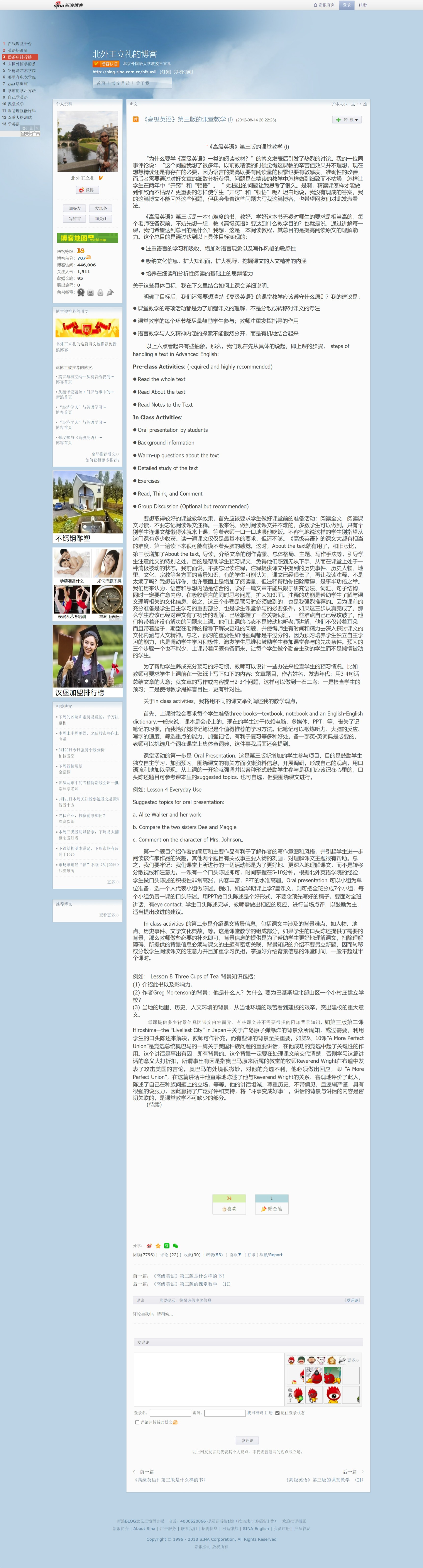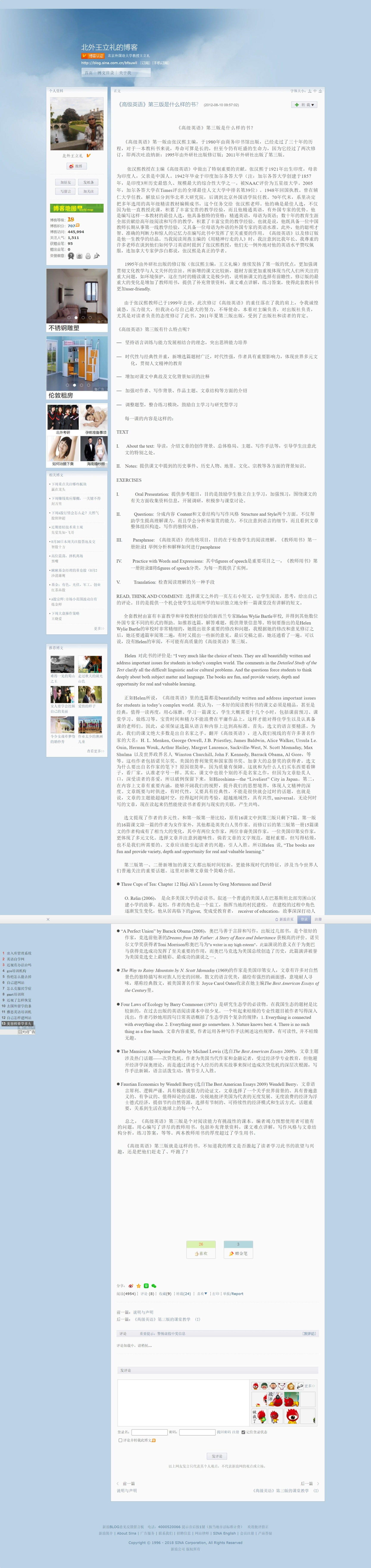 在上课之前,请同学们看看以下链接,《高级英语》(主编:英语教育家张汉熙教授)第三版编者:北外王立礼教授在她的新浪博客里面撰写的关于《高级英语》高年级英语教材的5篇相关文章,指导同学们如何更好地学习《高级英语》,用已学知识和方法对文章进行分析和评论,培养同学们独立学习的能力!一起来学习吧!