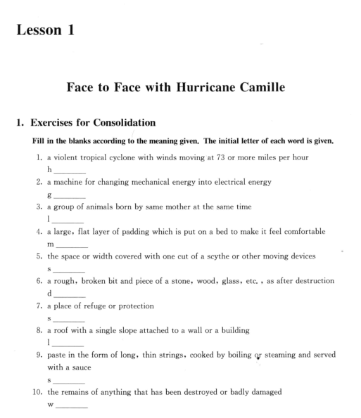• 1 第一单元 Lesson 1 Face to Face with Hurricane Camille
