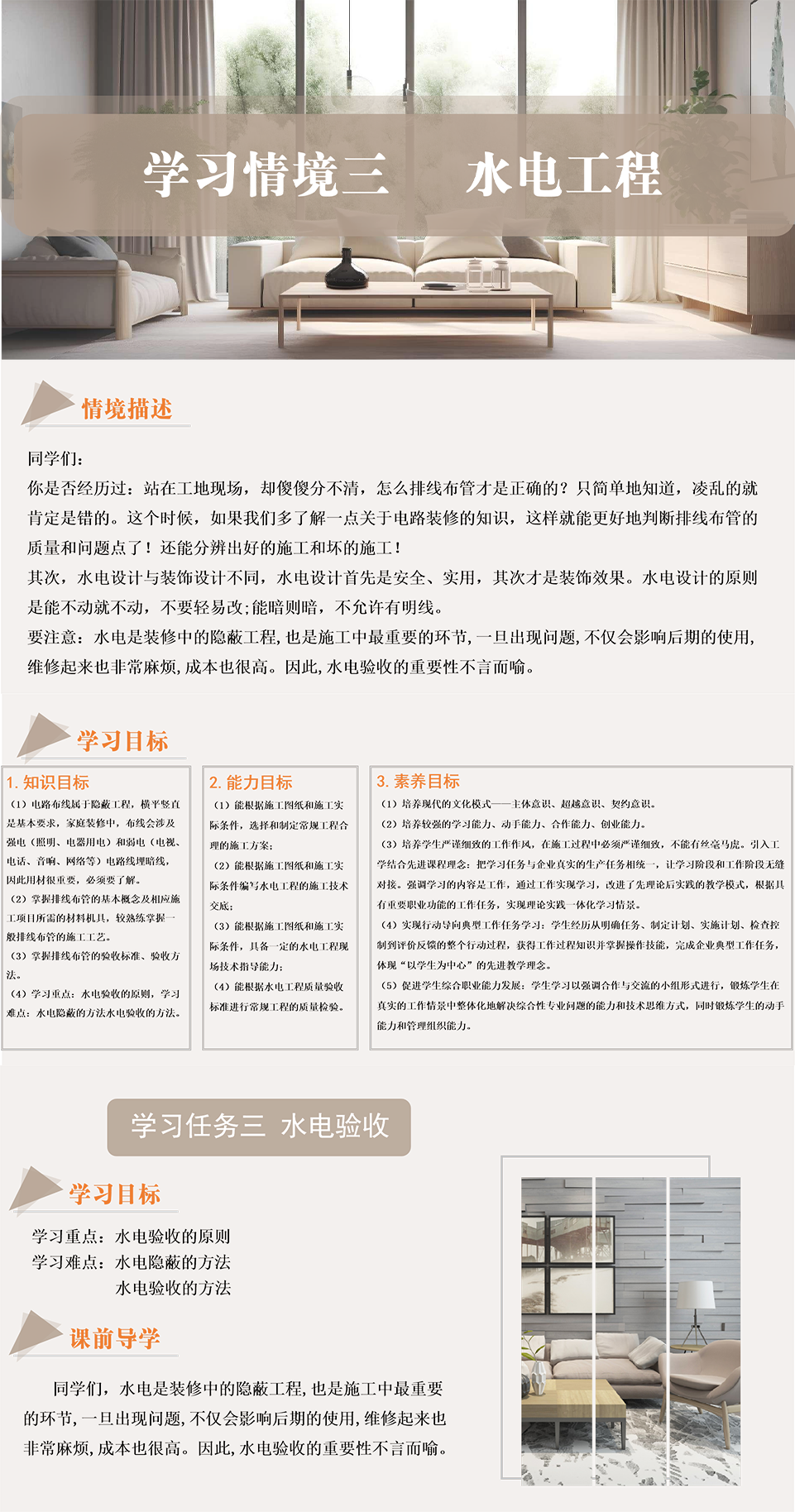 · 验收检查合格后要注意保存好水电路施工图纸,并且要求图纸与实际要相互一致,因为图纸是将来进行维修的依据