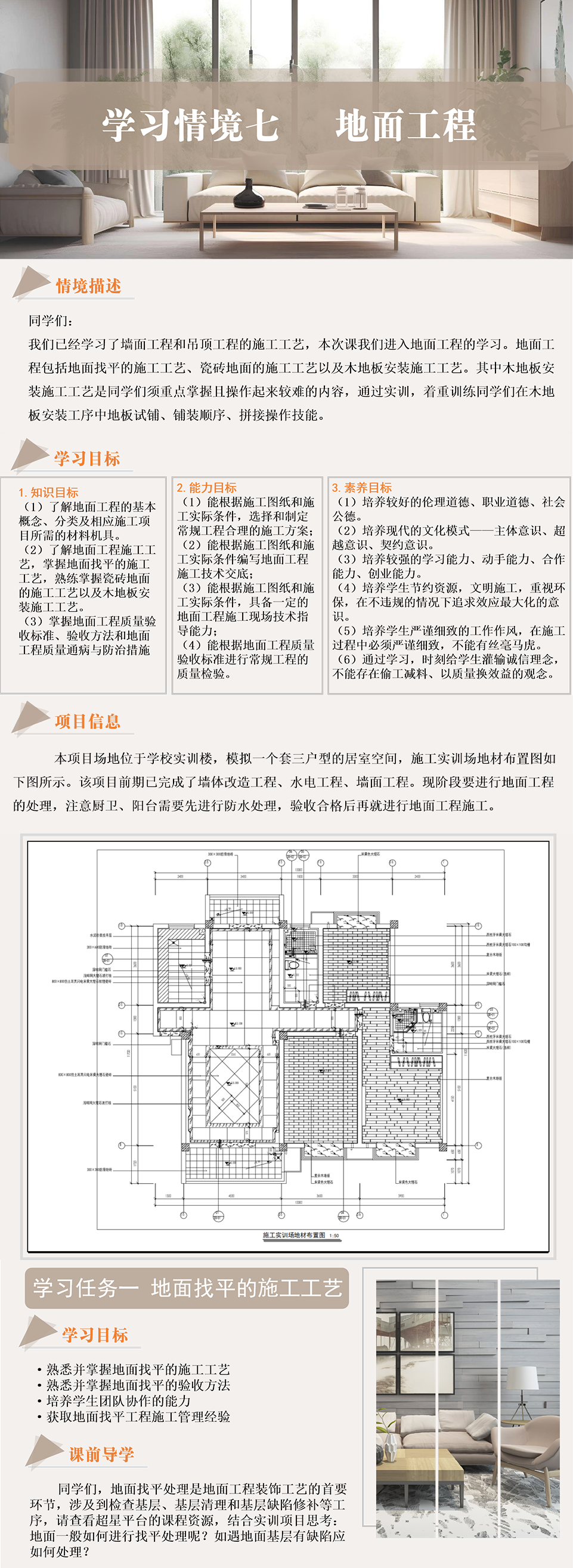 小提示:地面找平施工工艺详见本章节【学习课件】与【微课视频】。
