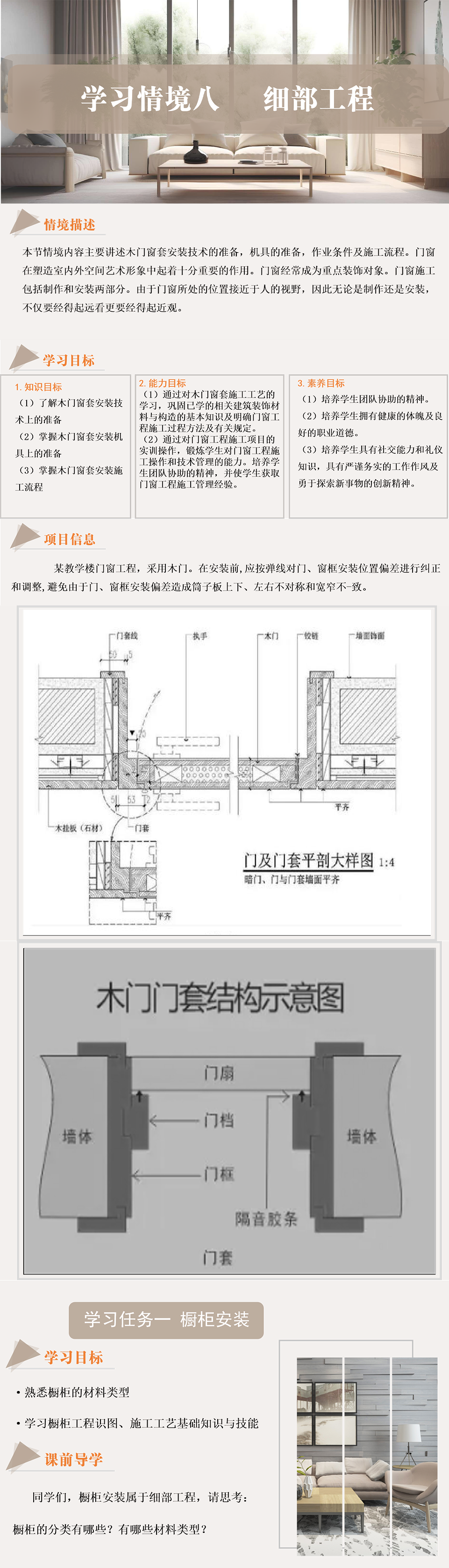 4.壁柜、吊柜的框安装应在抹灰前进行,扇的安装应在抹灰后进行。