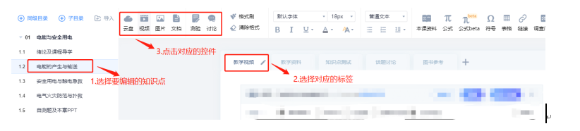选择需要添加内容的小节,右侧就是我们对应编辑的内容区域,可以看到整个编辑界面和我们word是一样的,操作也是一样。