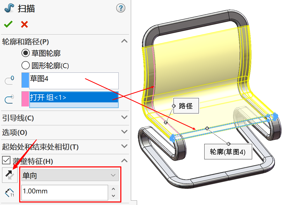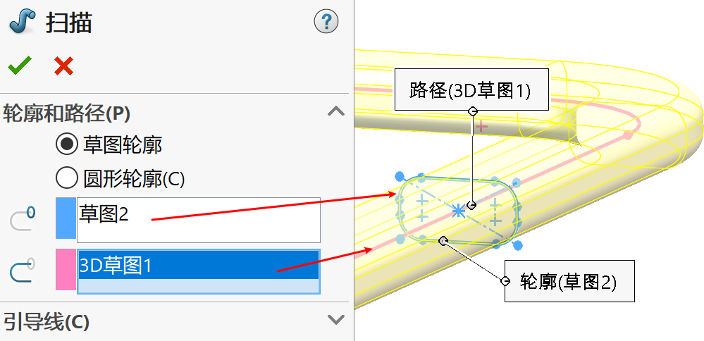 路径可以是一张草图、一条曲线或一组模型边线中包含的一组草图曲线。