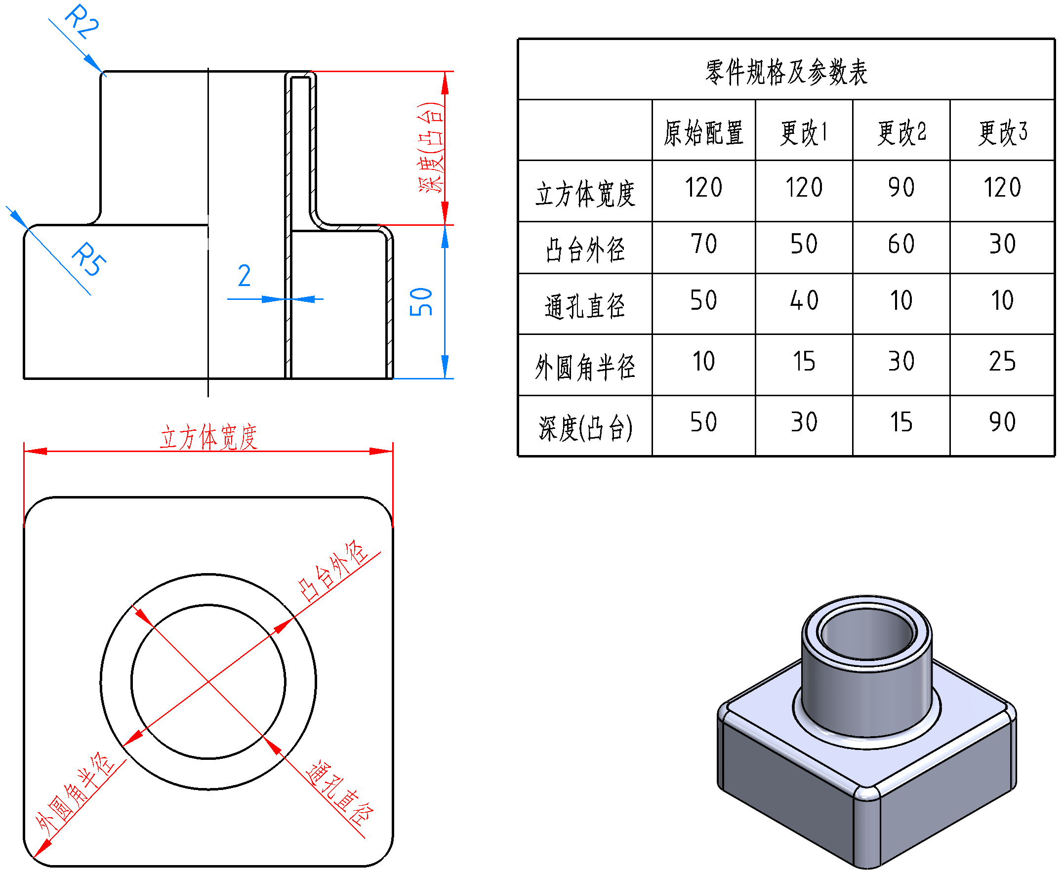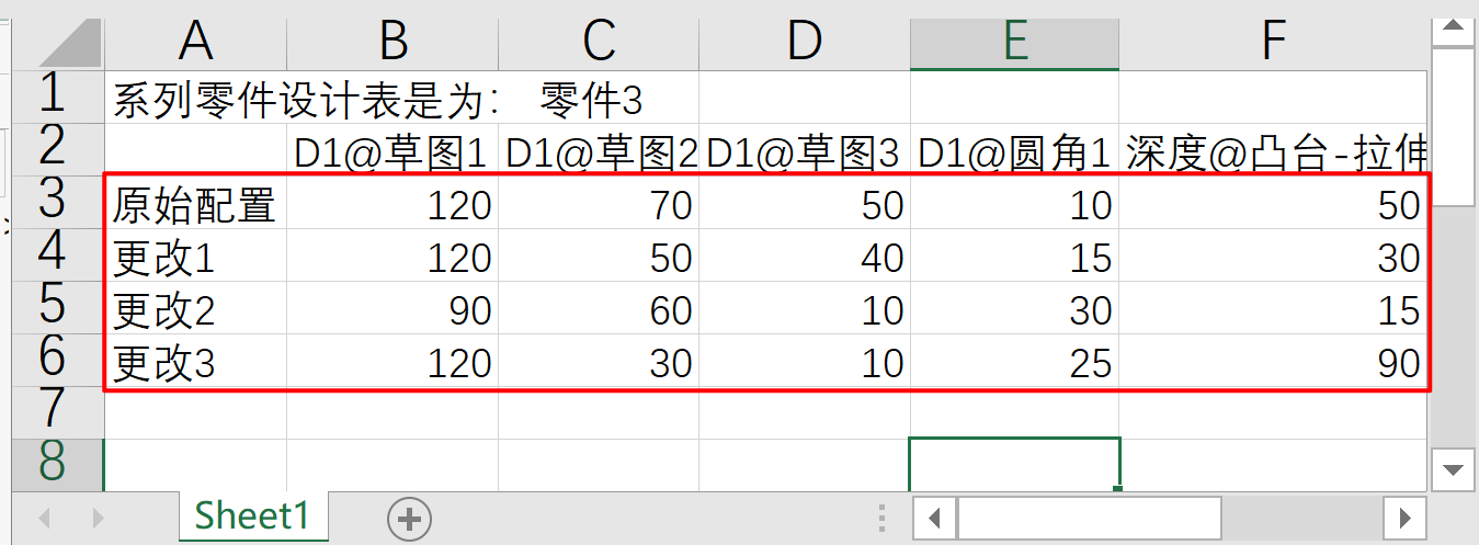 l 系列零件设计表:通过在嵌入的Microsoft Excel工作表中指定参数,您可以使用材料明细表建构多个不同配置的零件。