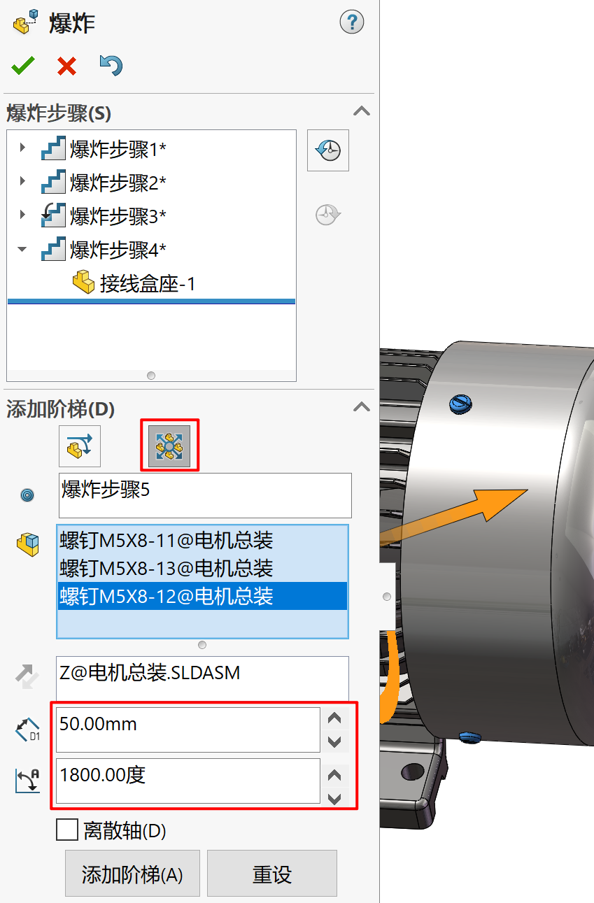 l 爆炸视图:您可以通过在图形区域中选择和拖动零件来生成爆炸视图,从而生成一个或多个爆炸步骤。