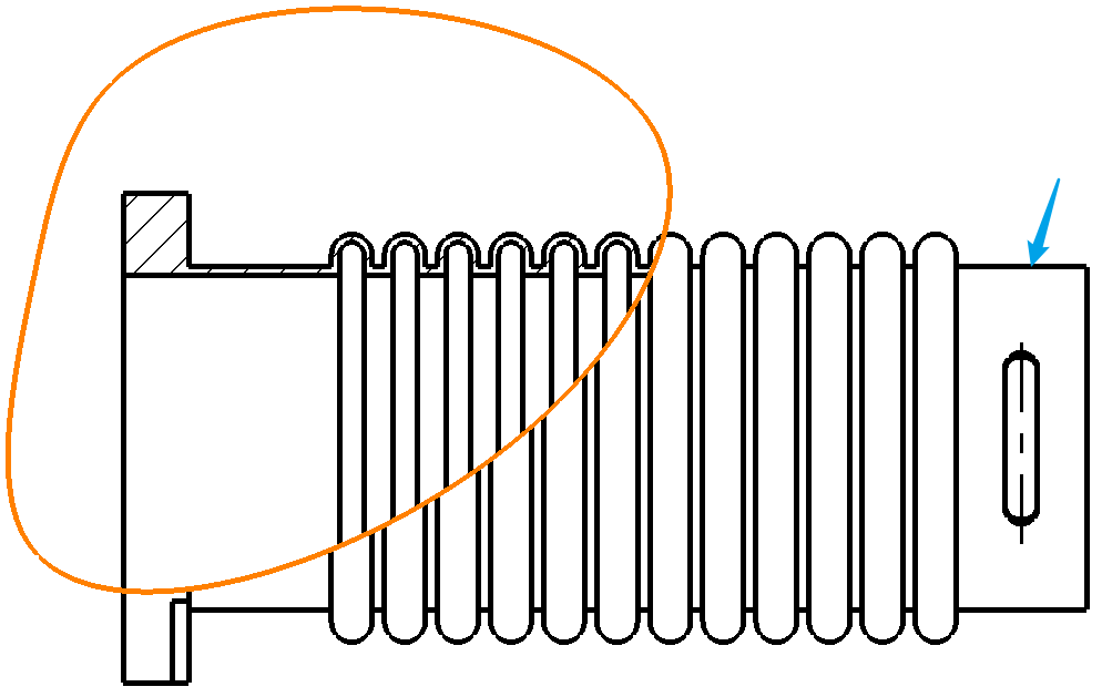 l 剪裁视图:剪裁视图通过隐藏除了所定义区域之外的所有内容而集中于工程图视图的某部分。未剪裁的部分使用草图(通常是样条曲线或其它闭合的轮廓)进行闭合。