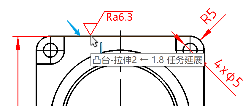 l 表面粗糙度:添加表面粗糙度符号到工程图当中,可通过属性栏编辑表面粗糙度符号的属性。