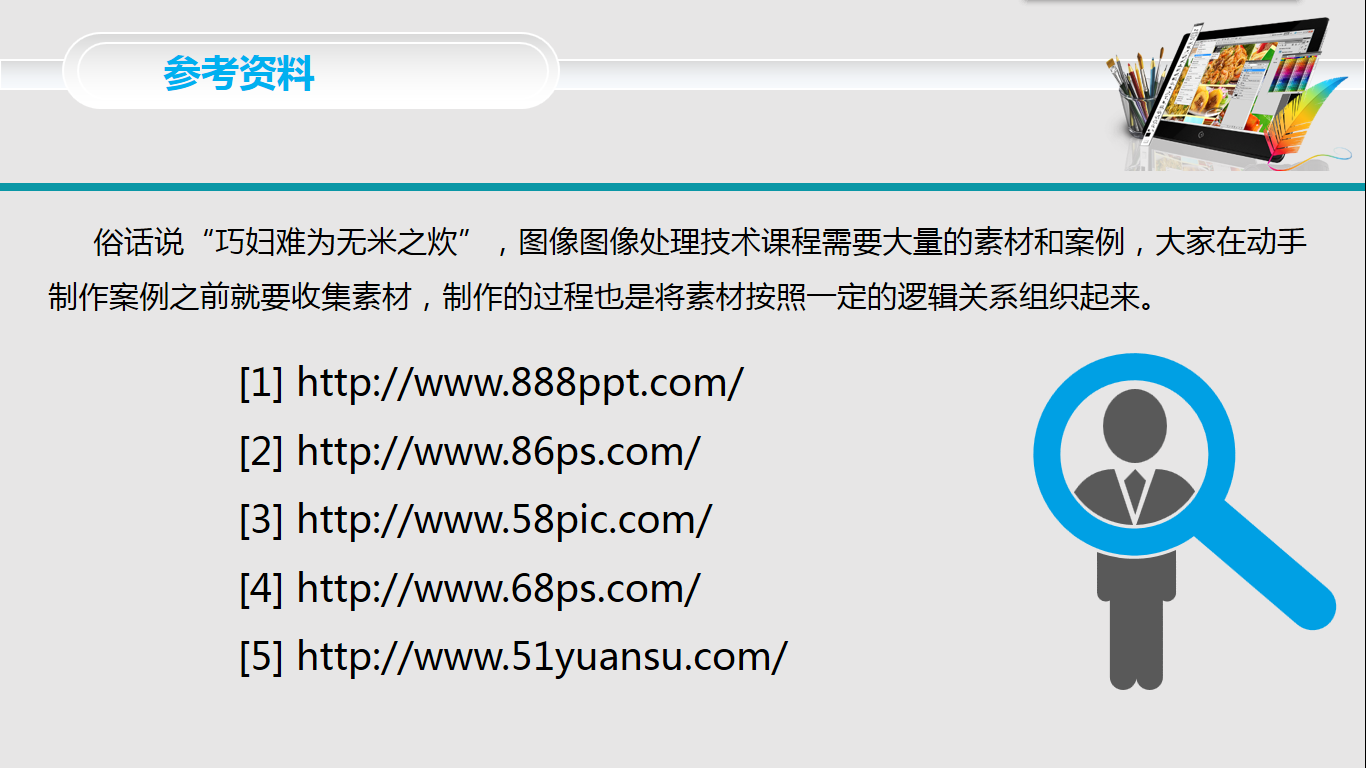 本课程以 Photoshop CS6 为例,全面系统地介绍了 Photoshop 软件的基本操作方法和图形图像处理技巧,包括 Photoshop 软件的认识、Photoshop 的基本操作、选区运用、图层运用、图像绘制工具、修饰与仿制工具运用、路径与形状运用、文字处理、图像的色彩和色调运用、图层蒙版运用、通道运用、滤镜运用和众多的 Photoshop 高级应用。