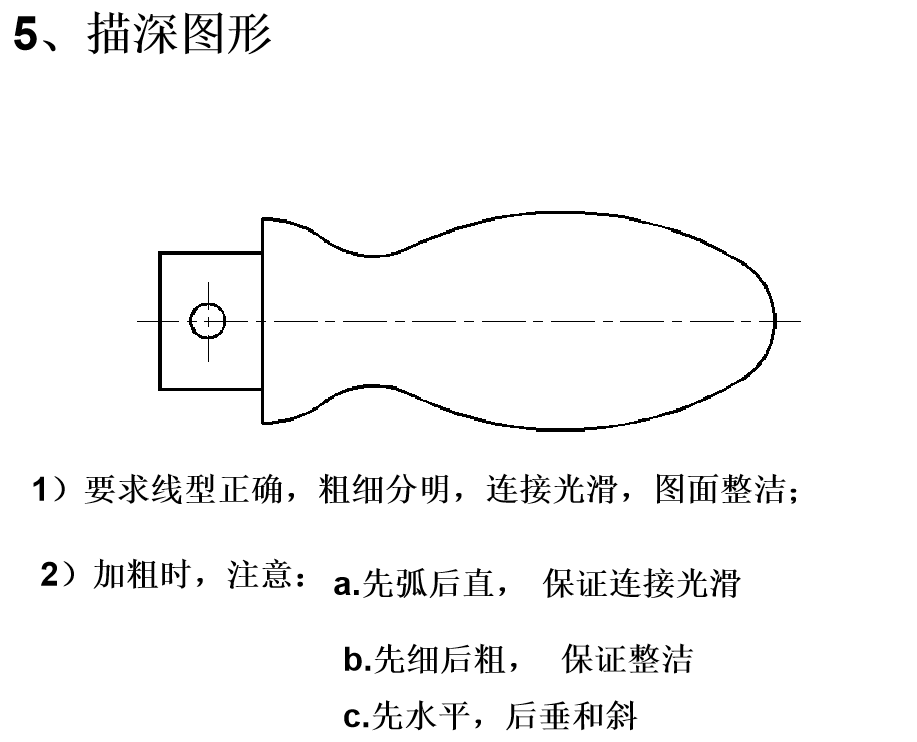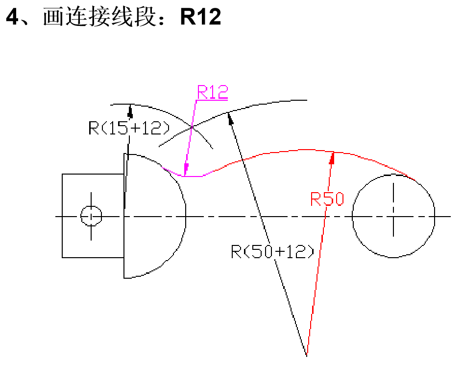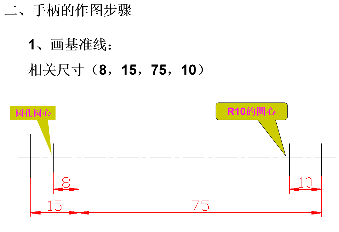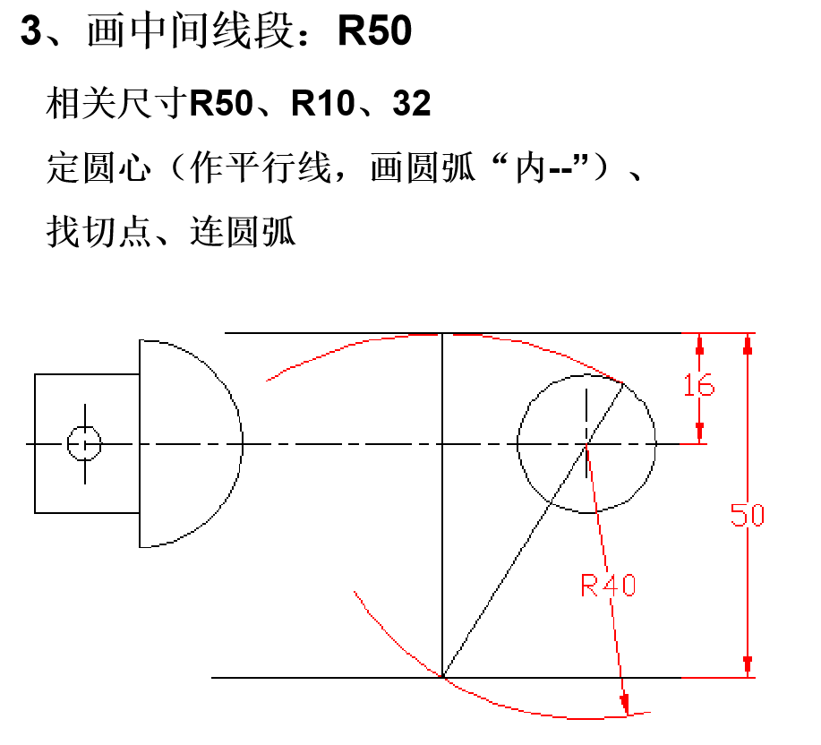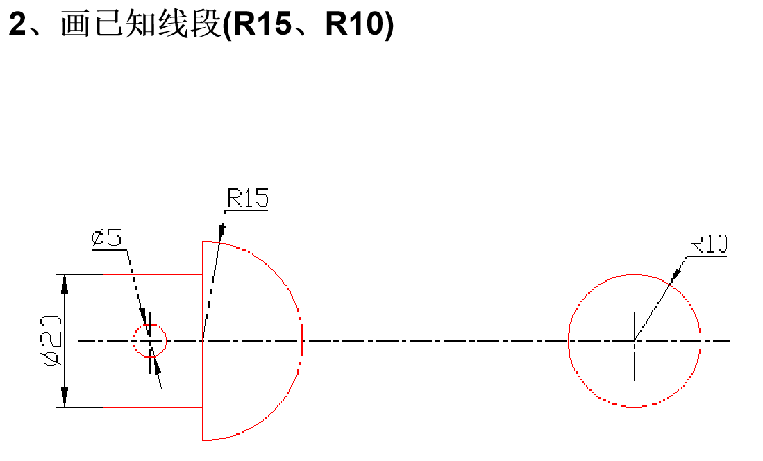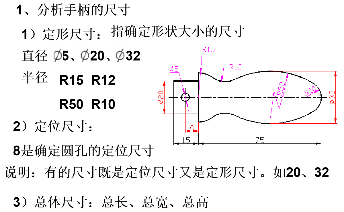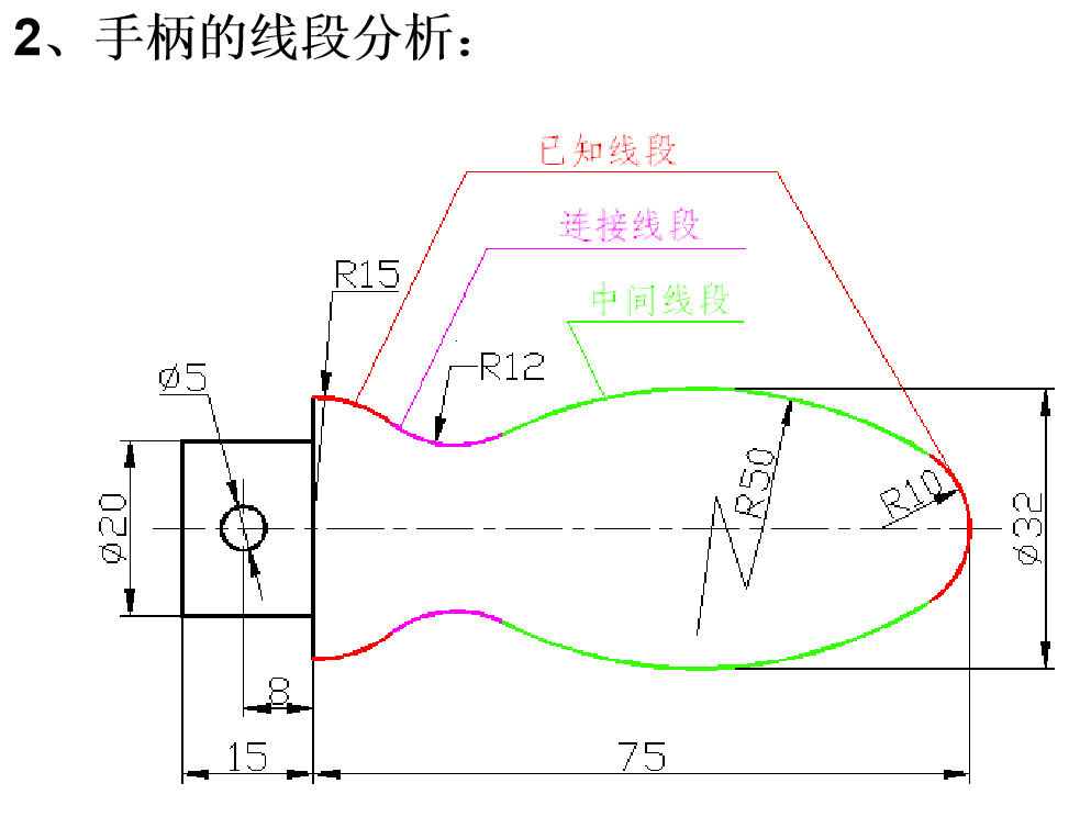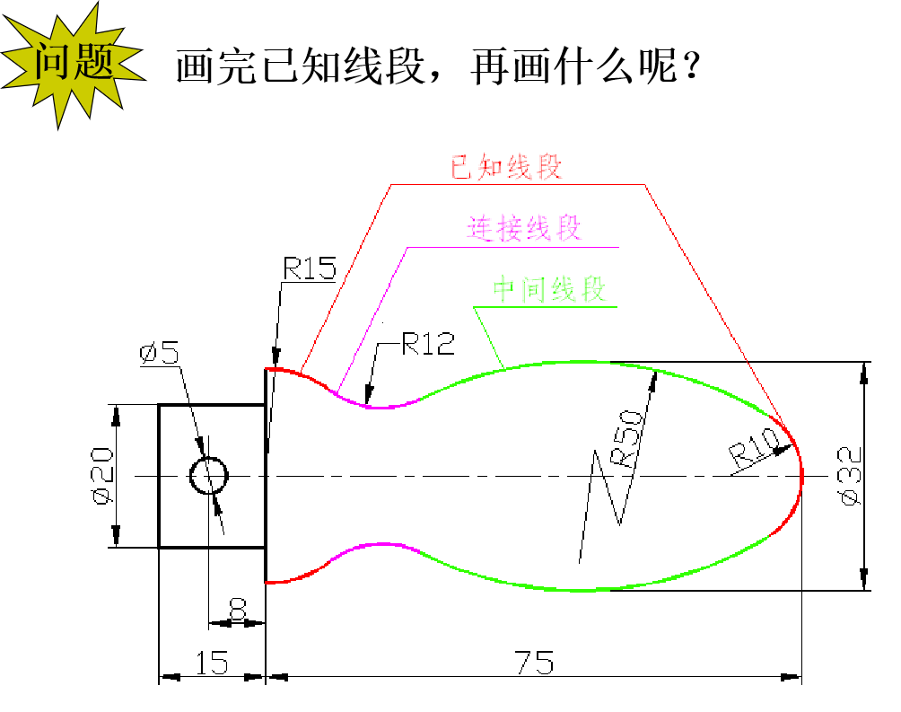 2)分析图形中尺寸的作用及线段性质,确定作图步骤。