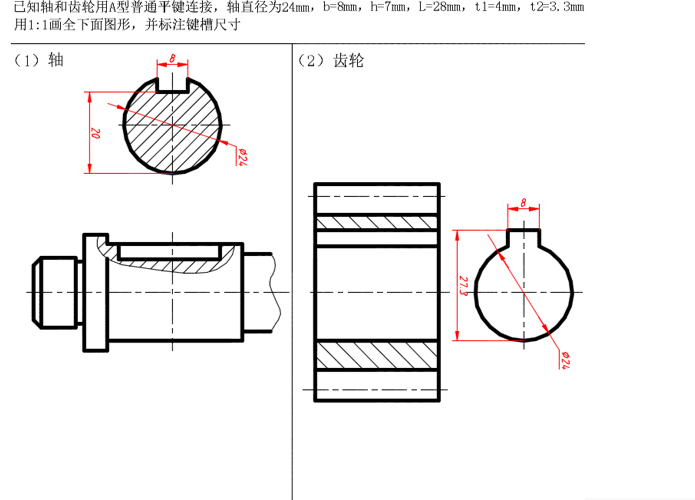 | 课前测试 | 尝试绘制键连接图(取d=100mm,GB/T键16×10×100)