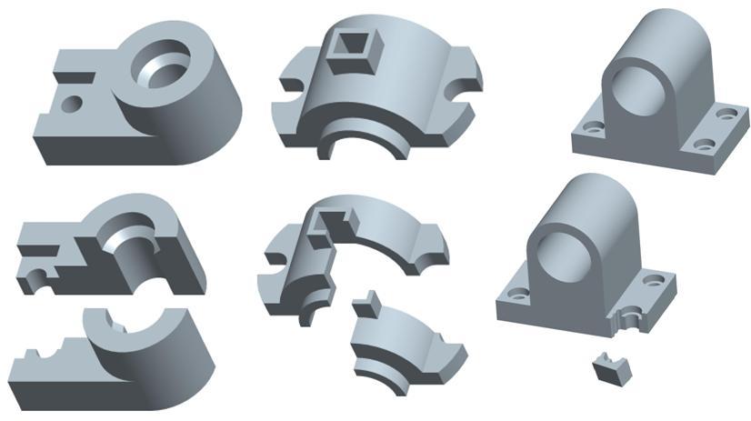 学习 建议 | 观察以上三个零件的形状特征,总结三个零件在剖切时有哪些不同。 | |||