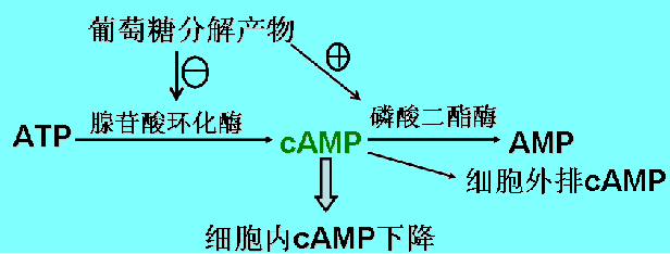 CAP与DNA结合的能力与cAMP浓度密切相关,而cAMP的浓度与葡萄糖的分解代谢相关。