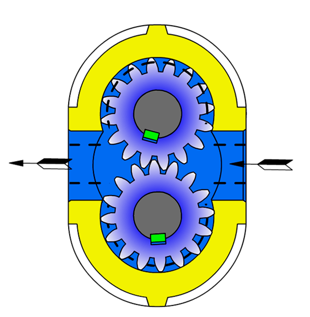 齿轮泵在现代液压技术中是产量和使用量最大的泵类元件。齿轮泵是以成对齿轮啮合传动的方式进行工作的一种定量液压泵。按结构形式不同,齿轮泵分为外啮合式和内啮合式,以外啮合齿轮泵应用较为广泛。本节主要以外啮合齿轮泵为主介绍齿轮泵的工作原理.