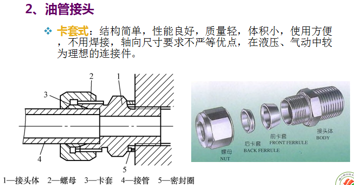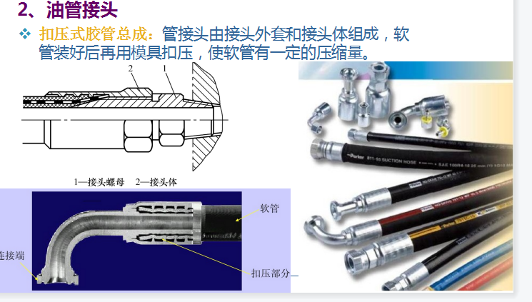 l管接头用于管道和管道、管道和其他液压元件之间的连接。对管接头的主要要求是安装、拆卸方便,抗振动、密封性能好。目前用于硬管连接的管接头形式主要有扩口式管接头,卡套式管接头和焊接式管接头三种。用于软管连接主要有扣压式。