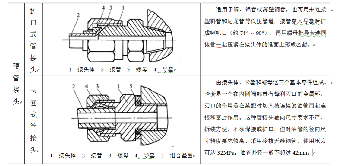 l液压系统中将管道、管接头和法兰等通称为管件,其作用是保证油路的连通,并便于拆卸、安装;根据工作压力、安装位置确定管件的连接结构;与泵、阀等连接的管件应由其接口尺寸决定管径