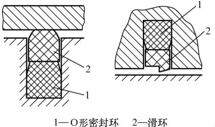 由O形密封圈与截面为矩形的聚四氟乙烯塑料滑环组成的组合密封装置。