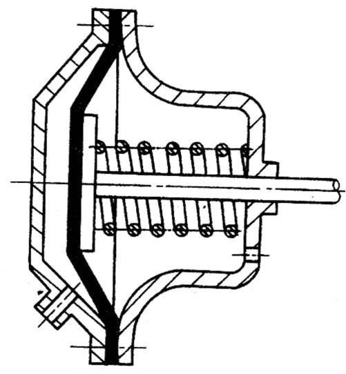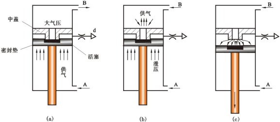 薄膜式气缸分为单作用式和双作用式两种。单作用式薄膜气缸的结构如图所示