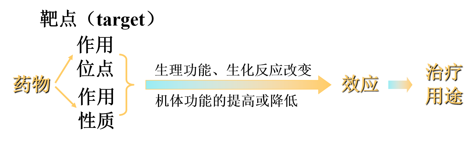 图示 药物与靶点的作用、效应与治疗用途
