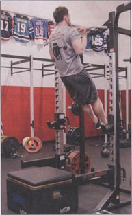 可以完成10个以上反握引体向上的运动者,应使用负重腰带来增加额外的重量。我们已经去除了原来次数很多的反握引体向上测试,并设计出能使运动者变得更强壮的训练系统。如果运动者能完成川个反握或正握引体向上,接下来就是加上25磅(约 11公斤)的负重腰带进行测试。