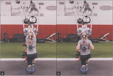我们使用“ X下拉”这个术语,因为开始时手臂是交叉的(图4)。抓住功能性训练机的独立把手,先内收并压下肩胛骨,伸展双肩,并加入一些外旋。这给一个原本是矢状面的练习增加了额状面和水平面的成分。